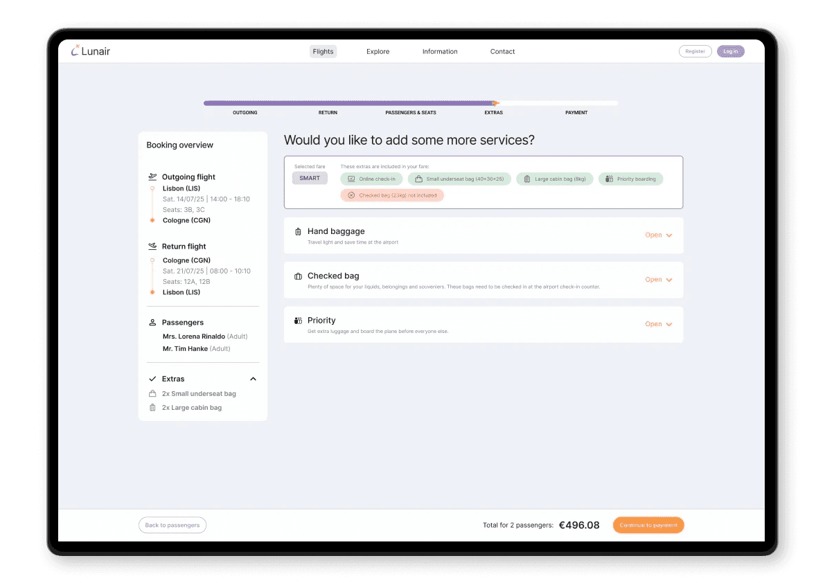 LunAir aims to deliver a seamless booking experience, guiding every traveler with transparency and ease from search to confirmation.