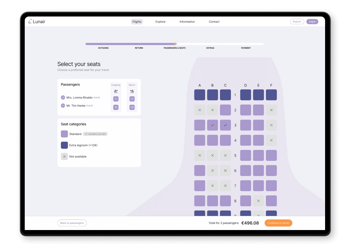 Seat selection & Extras